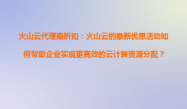 2025-09-18火山云代理商折扣:云端资源的智慧分配新机遇 一、云计算资源分配的挑战与企业需求 在数字化转型浪潮中,企业上云已成为刚需,但如何高效分配云计算资源仍是核...