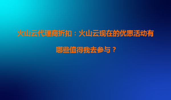 2025-09-18火山云代理商折扣:火山云现在的优惠活动有哪些值得我去参与? 一、火山云优惠活动大盘点 作为国内领先的云计算服务提供商,火山云(VolcEngineCloud)不定期推出多种优惠活动,助...