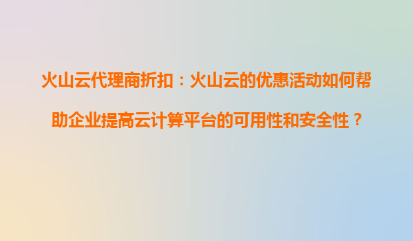 2025-09-18火山云代理商折扣:如何利用火山云的折扣活动提升企业的业务发展速度? 一、火山云的核心优势与代理商折扣的价值 火山云作为国内领先的云计算服务提供商,凭借强大的基础设施、弹性的资源调度和全球化覆盖...