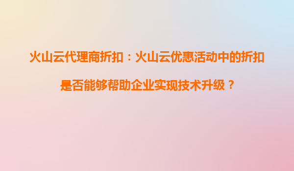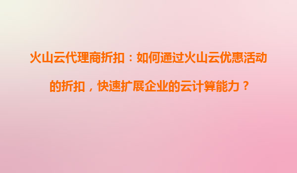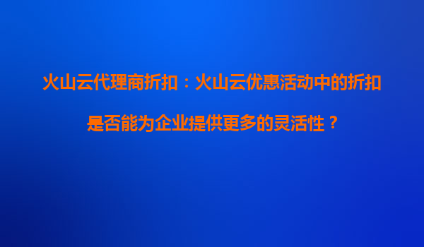 2025-09-17火山云代理商折扣:优质服务与优惠活动的双赢策略 一、引言:云计算市场竞争下的服务升级 在数字化转型加速的当下,云计算服务商之间的竞争已从单纯的价格战转向综合服务能力的比拼。火山云作为领先的云服务提...