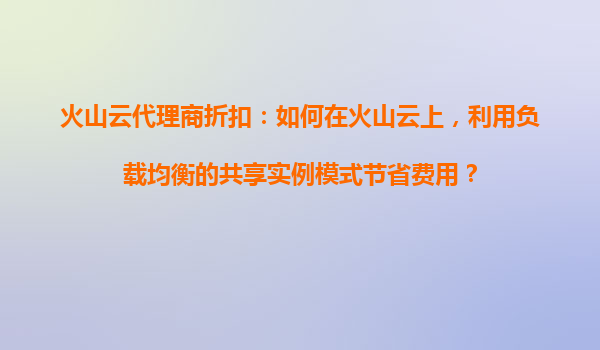 2025-11-01火山云代理商折扣:如何在火山云上,利用负载均衡的共享实例模式节省费用? 一、火山云的优势概述 火山云(VolcanoEngine)是字节跳动旗下的一站式云计算服务平台,凭借其强大的基础设...