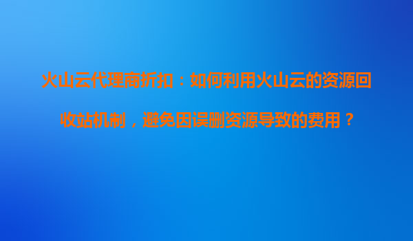 2025-10-31火山云代理商折扣:如何利用火山云的资源回收站机制,避免因误删资源导致的费用? 一、火山云资源回收站机制的核心价值 火山云作为领先的云计算服务提供商,其资源回收站机制为用户提供了高效的数...