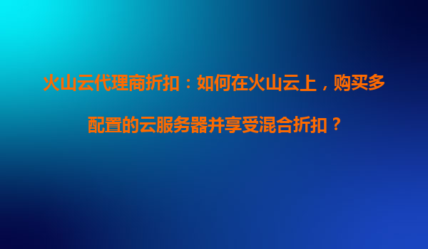 2025-11-01火山云代理商折扣:如何在火山云上,购买多配置的云服务器并享受混合折扣? 火山云的核心优势 火山云(VolcanoEngine)作为字节跳动旗下的云计算服务平台,凭...