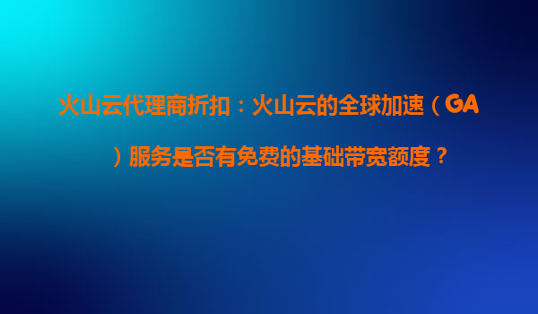 火山云代理商折扣:火山云的全球加速(GA)服务免费基础带宽额度解析 火山云全球加速(GA)服务概述 火山云(VolcanoEngine)作为字节跳动旗下的云计算品牌,致力于为企业和开发者提供高性能、低...