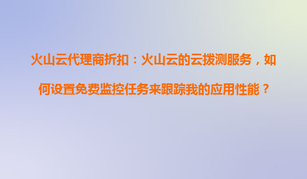 2025-11-01火山云代理商折扣:火山云的云拨测服务如何设置免费监控任务跟踪应用性能 火山云代理商折扣及其优势 火山云作为领先的云计算服务提供商,通过其代理商网络为广大用户提供极具竞争力的折扣政策。借助火山云...