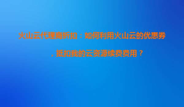 2025-11-01火山云代理商折扣:如何利用火山云的优惠券,抵扣我的云资源续费费用? 一、火山云的优势与代理商折扣的价值 火山云作为国内领先的云计算服务提供商,凭借其高性能计算能力、弹性扩展架构和全球覆盖的数据...
