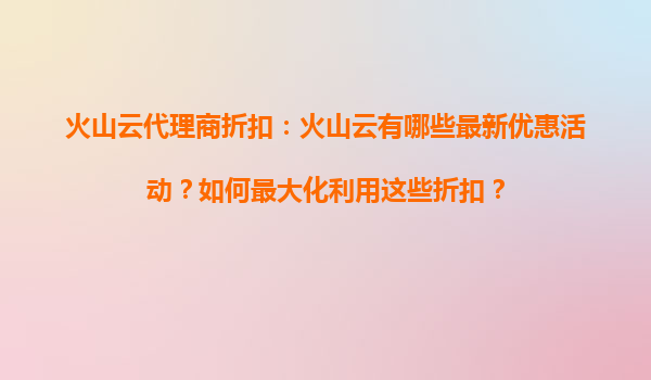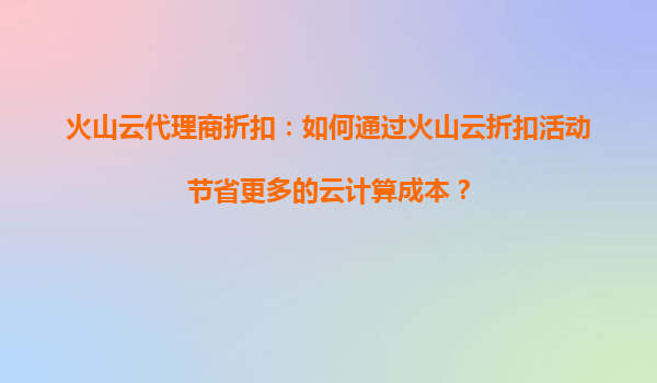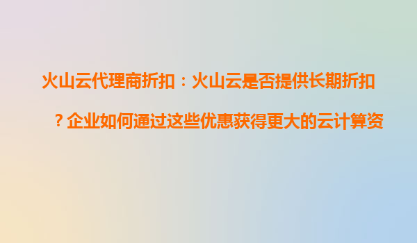 2025-09-16火山云代理商折扣:如何通过长期优惠最大化云计算资源? 一、火山云的长期折扣政策解析 火山云作为国内领先的云计算服务商,为吸引企业客户长期合作,提供了阶梯式折扣...