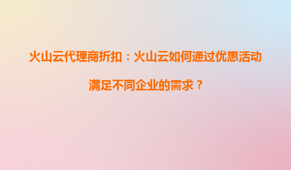 火山云代理商折扣:火山云如何通过优惠活动满足不同企业的需求? 一、引言:企业上云的多元化需求 在数字化转型浪潮中,企业对云计算的需求呈现多样化特征——从初创企...