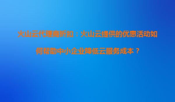 2025-09-16火山云代理商折扣:火山云提供的优惠活动如何帮助中小企业降低云服务成本? 一、火山云的核心优势:为中小企业提供高效稳定的云服务 火山云作为字节跳动旗下的云计算品牌,凭借全球化基础设施布局和技术实力...