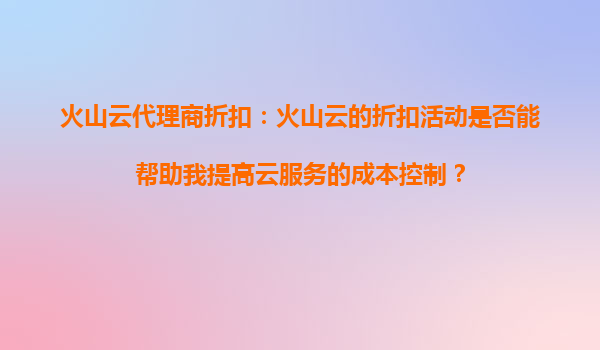 2025-09-16火山云代理商折扣:如何通过折扣活动提升云服务成本控制? 一、引言 在数字化转型的浪潮中,云服务已成为企业降本增效的重要工具。然而,随着业务规模扩大,云服务成本也可能随之攀升。如何有效控制成...