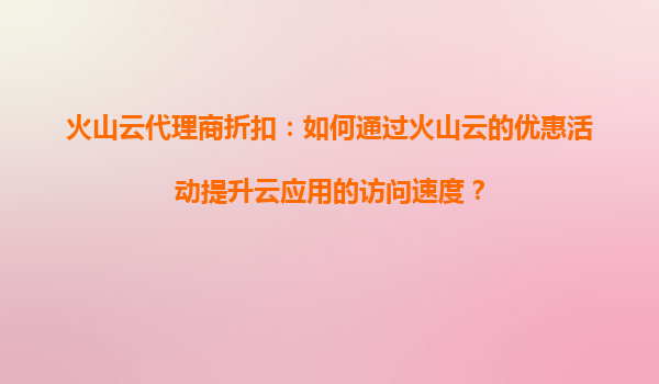 2025-09-16火山云代理商折扣:如何通过火山云的优惠活动提升云应用的访问速度? 引言 在当今数字化的世界中,云计算已成为企业和开发者构建、部署和管理应用程序的核心基础设施。对于追求高性能和稳定性的用户来说,选择...