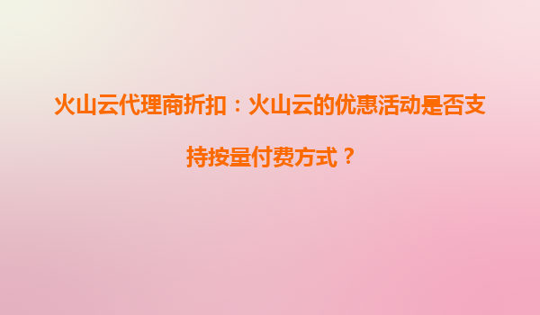 2025-09-16火山云代理商折扣:按量付费的自由与灵活性 一、火山云优惠活动是否支持按量付费? 火山云作为字节跳动旗下的云计算服务品牌,始终以用户需求为核心,提供灵活多样的付费方式。针对...