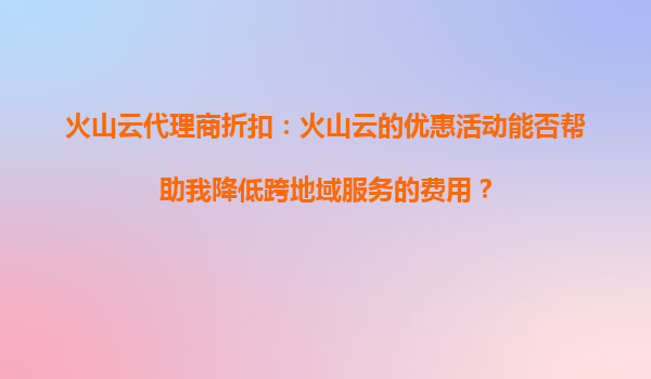 2025-09-16火山云代理商折扣:火山云的优惠活动能否帮助降低跨地域服务的费用? 引言 随着企业全球化布局的加速,越来越多的公司开始依赖云计算服务来支撑跨地域业务。然而,高昂的跨地域数据传输费用和海外部署成本成为...