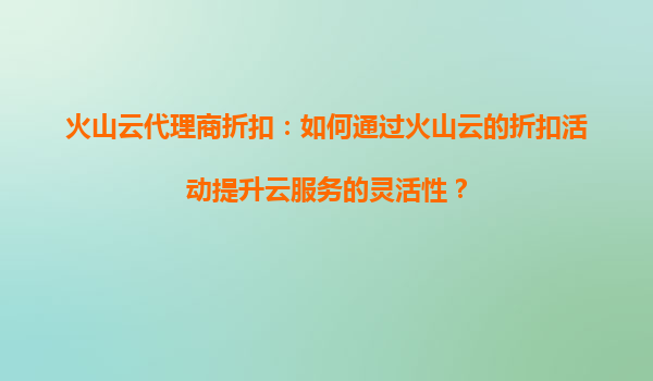 2025-09-16火山云代理商折扣:如何通过火山云的折扣活动提升云服务的灵活性? 一、火山云的核心优势 火山云作为字节跳动旗下的云计算服务品牌,凭借其强大的基础设施和技术积累,为用户提供了高性能、高可靠性的...
