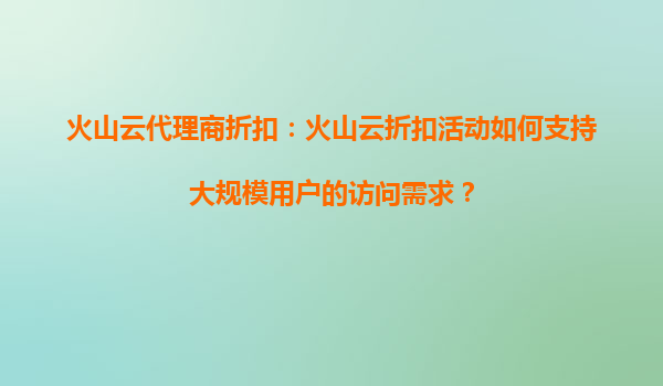 2025-09-16火山云代理商折扣活动如何支持大规模用户的访问需求? 一、火山云的核心优势:为大规模访问奠基 火山云作为字节跳动旗下的云计算服务平台,凭借其底层技术架构和全球化资源布局,天然具备应对高并发、大规模访问...