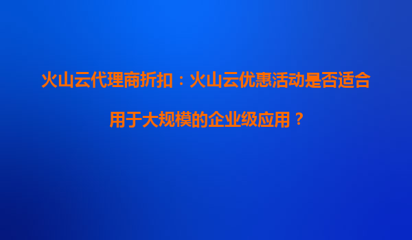 2025-09-16火山云代理商折扣:火山云优惠活动是否适合用于大规模的企业级应用? 一、引言:企业级应用的云计算需求 随着数字化转型的加速,企业对云计算的需求日益增长。大规模企业级应用需要稳定...