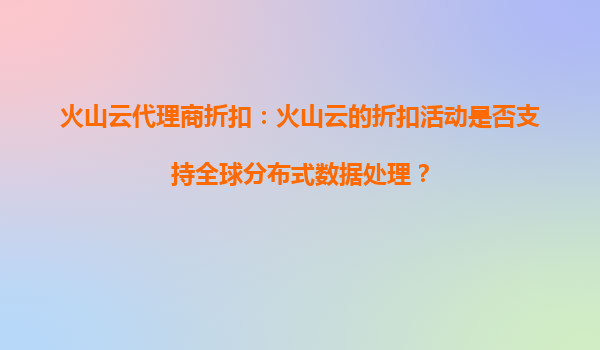 2025-09-16火山云代理商折扣:全球分布式数据处理的强大支持 引言 在当今数字化时代,全球分布式数据处理已成为企业高效运营的关键。火山云的代理商折扣活动是否支持这一需求?答案是肯定的。火山云凭借其强大的技术优...