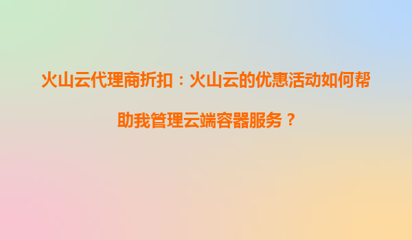 2025-09-16火山云代理商折扣:如何通过优惠活动优化云端容器服务管理? 引言:云端容器服务的成本挑战 在数字化浪潮中,企业依赖云端容器服务实现应用快速部署与扩展,但高昂的云...