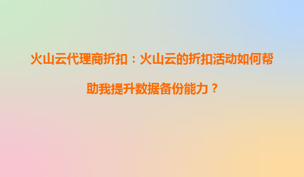 2025-09-16火山云代理商折扣:如何通过优惠活动强化您的数据备份能力 一、数据备份的挑战与火山云的解决方案 在数字化时代,数据是企业最宝贵的资产之一。然而,数据备份常面临成本...