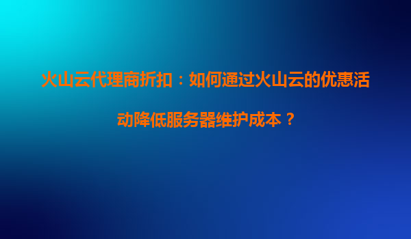 2025-09-16火山云代理商折扣:如何通过火山云的优惠活动降低服务器维护成本? 一、火山云的核心优势与代理商政策 作为字节跳动旗下的云计算服务品牌,火山云凭借全球分布式基础设施、弹性计算资源和AI技术融合,为企业...