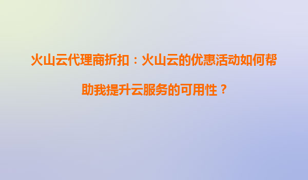 2025-09-16火山云代理商折扣:如何通过优惠活动提升云服务可用性? 一、火山云的核心优势与可用性保障 1.1全栈式云服务架构 火山云提供从IaaS到PaaS的完整技术栈,其分布式架构设计具备以下特点: ...