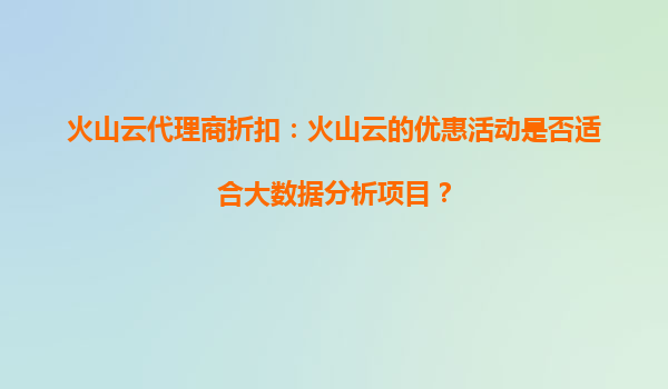 2025-09-16火山云代理商折扣:火山云的优惠活动是否适合大数据分析项目? 1.火山云的核心优势 火山云是字节跳动旗下的云计算服务平台,凭借强大的技术积累和全球化基础设施布局,为企业和开发者提供高性能...