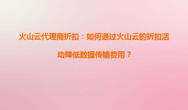 2025-09-16火山云代理商折扣:如何通过火山云的折扣活动降低数据传输费用? 一、引言 在当今数字化时代,数据传输已成为企业运营的核心需求之一。无论是内容分发、云计算还是大数据分析,稳定高效的数据传输服务...