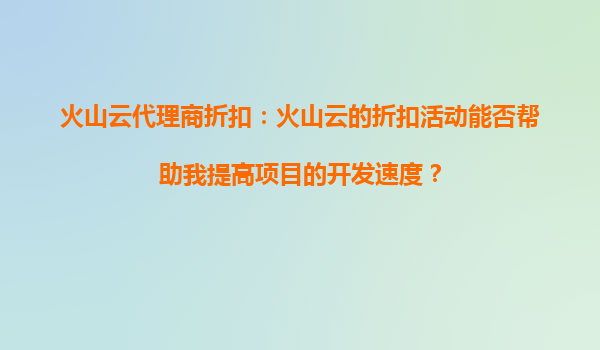 2025-09-16火山云代理商折扣对项目开发速度的积极影响 在当前数字化转型的浪潮中,云计算已成为企业加速项目开发的核心基础设施。火山云作为国内领先的云服务提供商,凭借其高性能计算资源、稳定的全球网络覆盖以及灵活的...