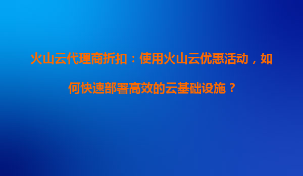 2025-09-16火山云代理商折扣:如何利用优惠活动快速部署高效云基础设施 引言 随着企业数字化转型的加速,云计算已成为支撑业务增长的重要基石。火山云作为国内领先的云服务提供商,凭借其稳定...
