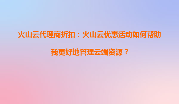 火山云代理商折扣:火山云折扣活动如何帮助优化云服务资源管理 一、火山云的核心优势 火山云作为行业领先的云计算服务提供商,具备多项核心竞争力: 弹性计算能力:支持秒级扩容缩容,轻松应对业务峰值需求 全...