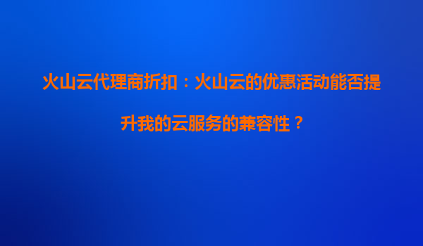 2025-09-16火山云代理商折扣:火山云的优惠活动能否提升我的云服务的兼容性? 引言 云计算已经成为现代企业不可或缺的一部分。无论是数据存储、应用开发,还是人工智能和大数据分析,云服务都发挥...