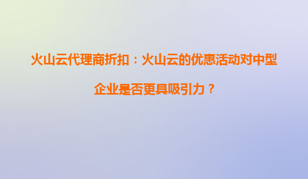 2025-09-16火山云代理商折扣:火山云的优惠活动对中型企业是否更具吸引力? 引言 在数字化转型的大背景下,云计算已成为企业提升效率、降低成本的关键工具。中型企业作为市场中的重要力量,对云服务的...
