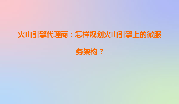 火山引擎代理商视角:如何高效规划火山引擎上的微服务架构