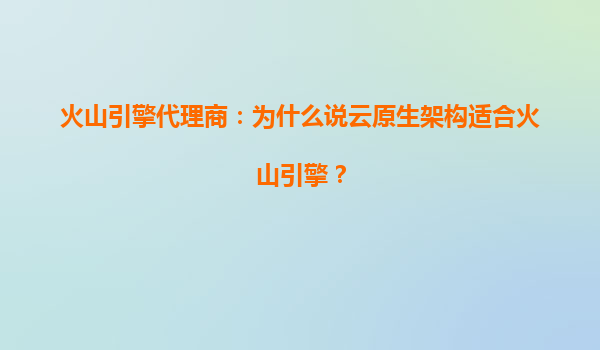 火山引擎代理商:为什么说云原生架构适合火山引擎?