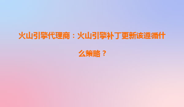 火山引擎补丁更新策略:高效、安全与智能的运维实践