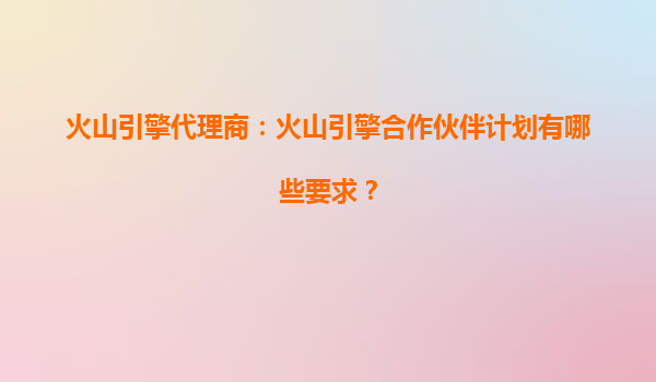 作为字节跳动旗下的企业级技术服务平台,火山引擎通过代理商体系拓展市场覆盖。其合作伙伴计划对代理商设有以下核心要求: