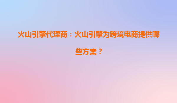 火山引擎代理商:火山引擎为跨境电商提供哪些方案?