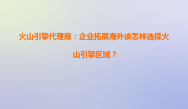 火山引擎代理商:企业拓展海外如何选择火山引擎区域?