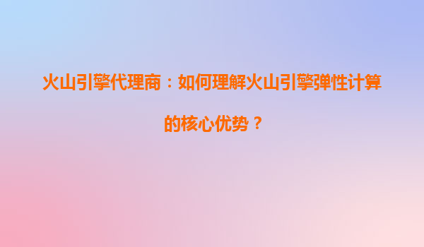 火山引擎代理商:如何理解火山引擎弹性计算的核心优势?