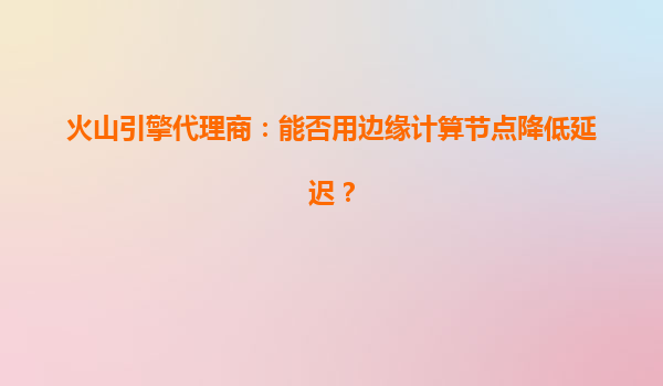 火山引擎代理商:用边缘计算节点重塑低延迟体验