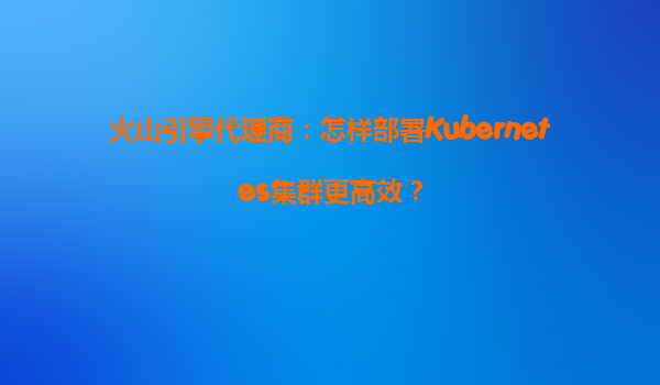 火山引擎代理商指南:如何高效部署Kubernetes集群