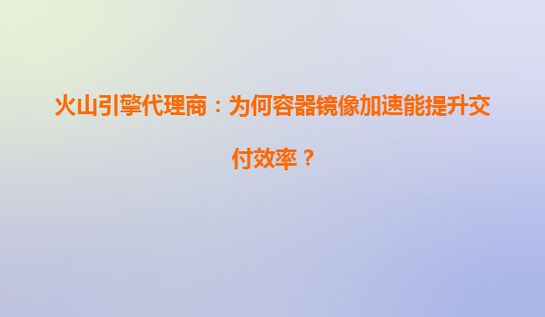 火山引擎代理商:容器镜像加速如何成为企业交付效率的“涡轮增压器”