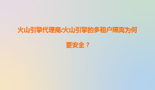 火山引擎多租户隔离:打造坚不可摧的云端安全堡垒