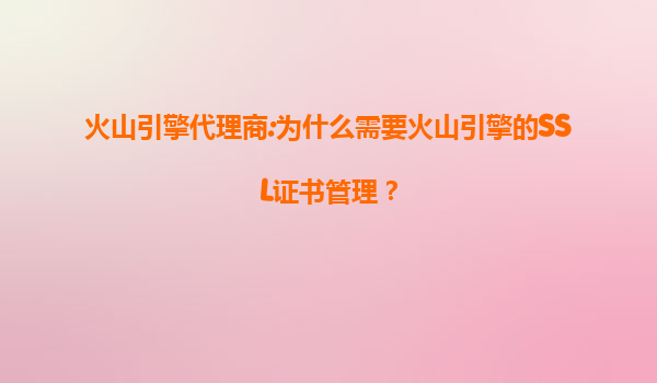 为什么需要火山引擎的SSL证书管理?—— 代理商的深度解读