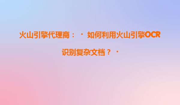 作为火山引擎代理商,我们建议按照以下步骤使用OCR技术处理复杂文档: