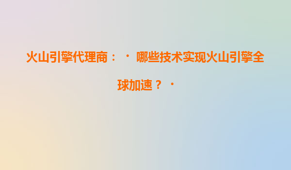 火山引擎代理商:哪些技术实现火山引擎全球加速?