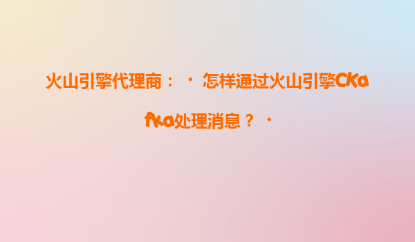 火山引擎代理商:怎样通过火山引擎CKafka处理消息?