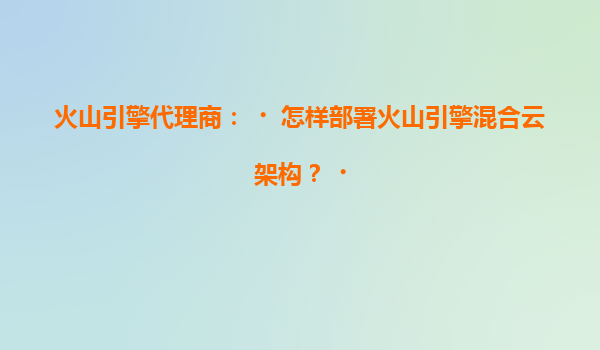 火山引擎代理商:如何高效部署火山引擎混合云架构
