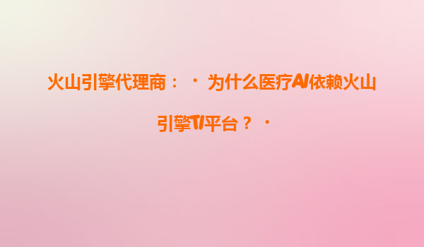 火山引擎代理商:为什么医疗AI依赖火山引擎TI平台?