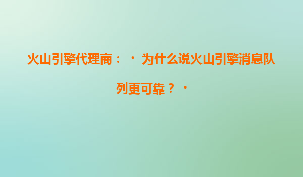 火山引擎代理商:为什么说火山引擎消息队列更可靠?